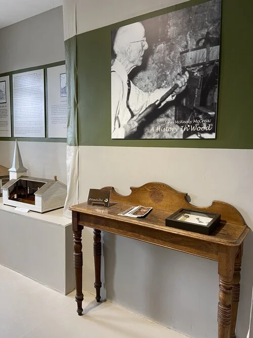 Reproductions of a variety of pioneer homes, furnishings, buildings and other structures were created by McCrea during the last twenty years of his lifetime - 1937 to 1957. Each model, whether a tiny flycatcher on a mantel or a large grist mill is replicated in detail and true to the original.