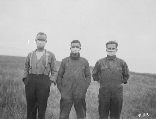 Alberta men in masks, 1918 (Source)