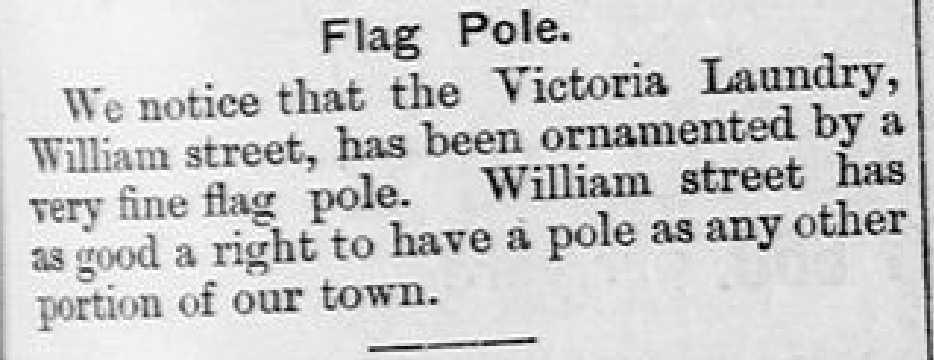 By 1891, Victoria Laundry was on Russell Street, near the Sylvester factory, which they noted in their advertising, likely hoping to do the washing for factory workers.
