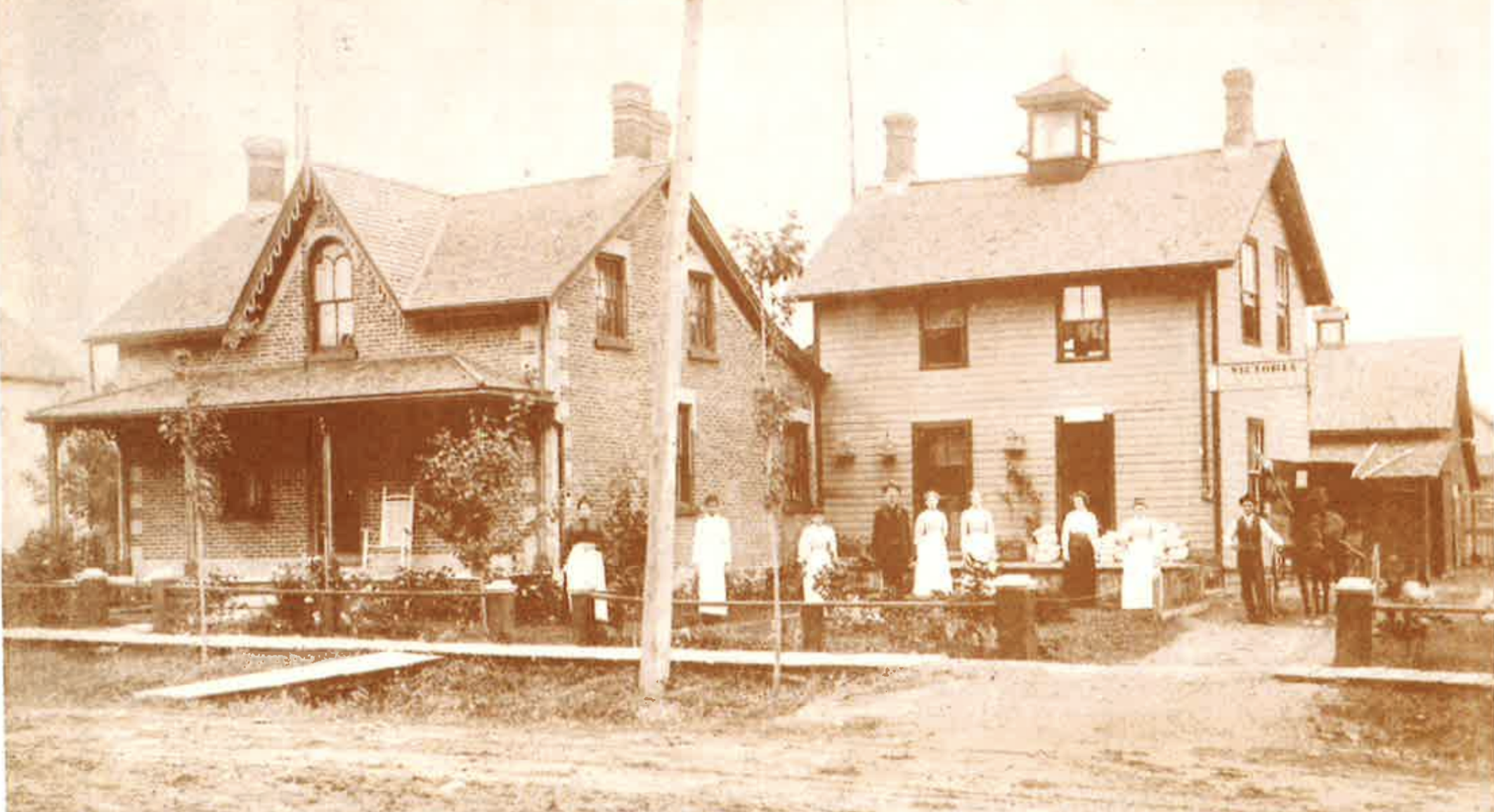 Where once a red brick ‘Ontario cottage’ style home stood out front, at some point it was renovated into the boxy, stucco-covered two-storey standing today.