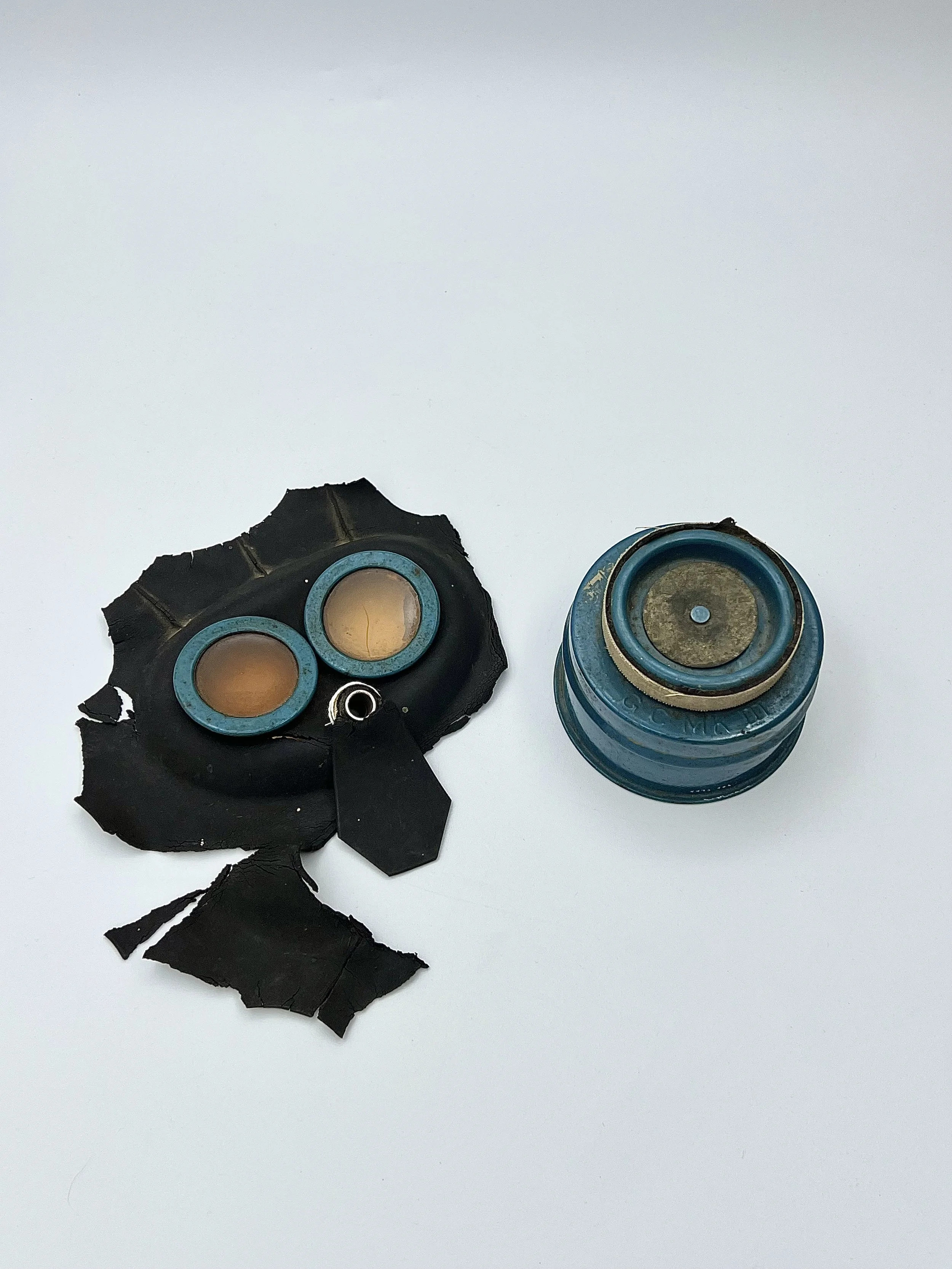 Quand il était enfant, Alan utilisait ce masque à gaz lors des alertes d’attaques aériennes en Angleterre. (1973.982.1)